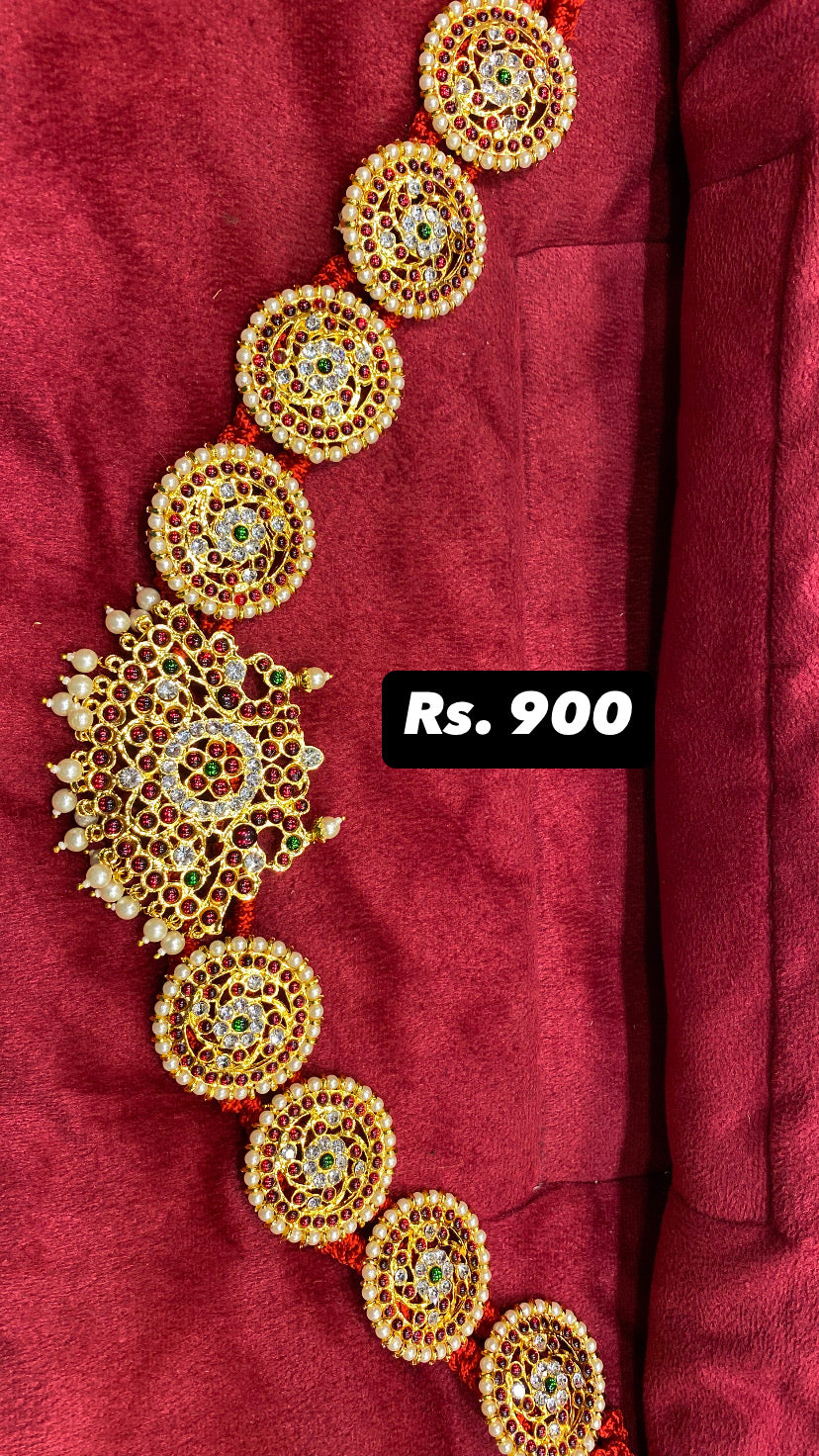 This Bharatnatyam hip belt is expertly crafted to provide both elegance and functionality during classical dance performances. Designed to complement traditional attire, it offers a secure fit that enhances movement while maintaining the dancer’s graceful silhouette. Its durable construction ensures long-lasting wear, making it an essential accessory for serious practitioners of Bharatnatyam.
